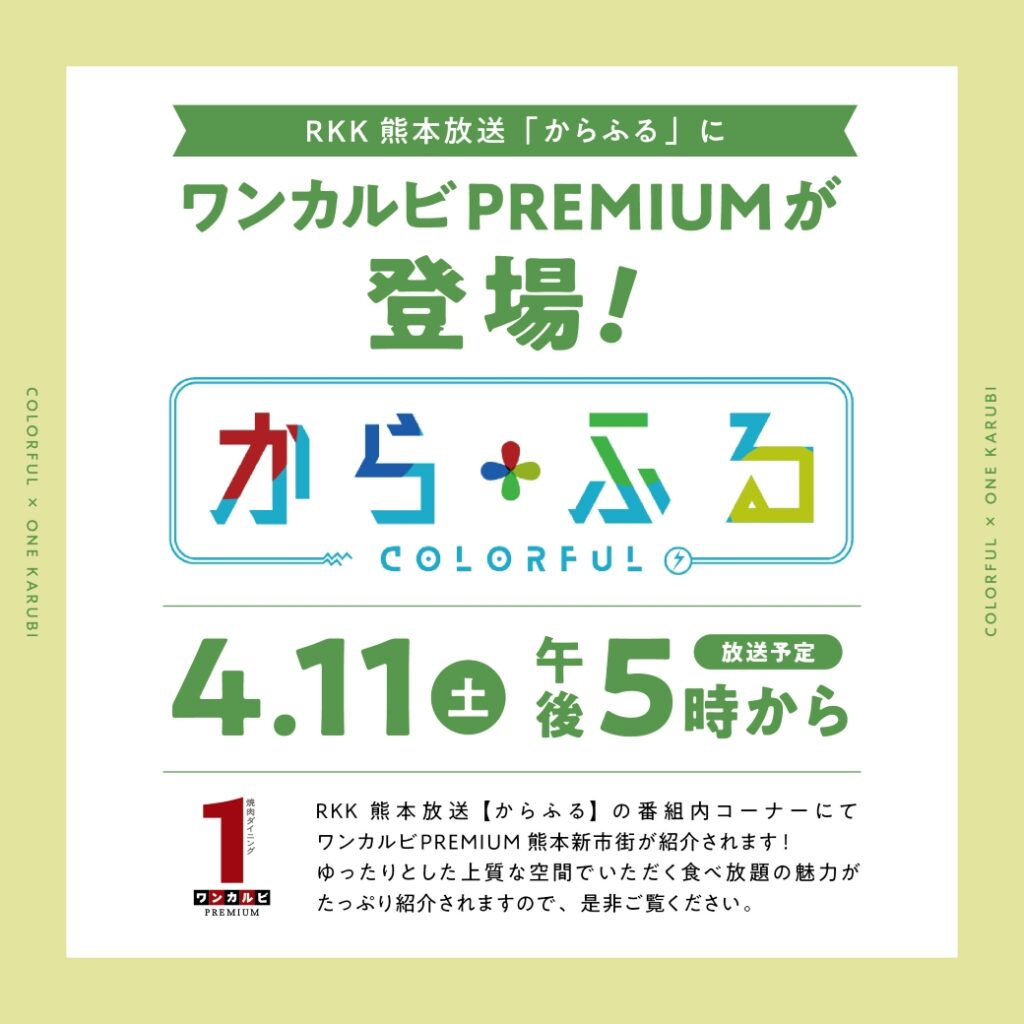 RKK熊本放送の毎週土曜日17時から放送している『からふる』にて、「ワンカルビPREMIUM熊本新市街」を紹介。
